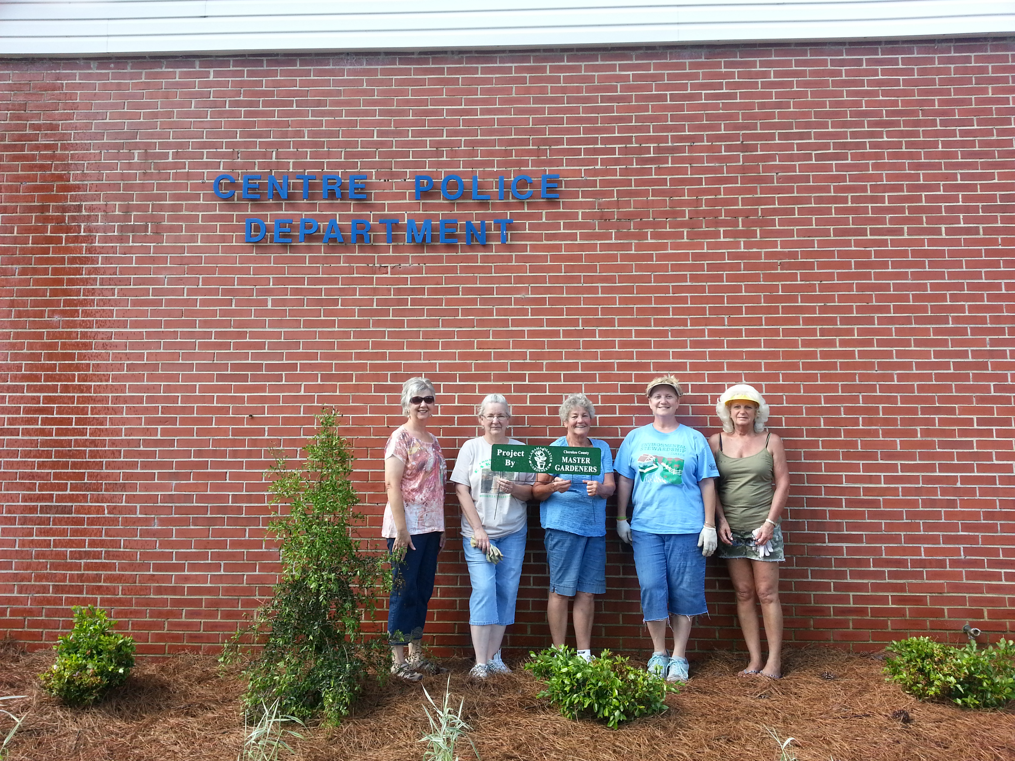 Chief Kirk Blankenship and Mayor Tony Wilkie would like to extend their gratitude to the Master Gardeners for taking on Centre Police Department as a project. The Master Gardeners revamped the landscaping at the entrance of the police department with a variety of beautiful plants such as Stella Day Lilies, Black-Eyed Susans, Japanese Hollies, Tea Olive Bush, and Pink Pearl Azaleas.